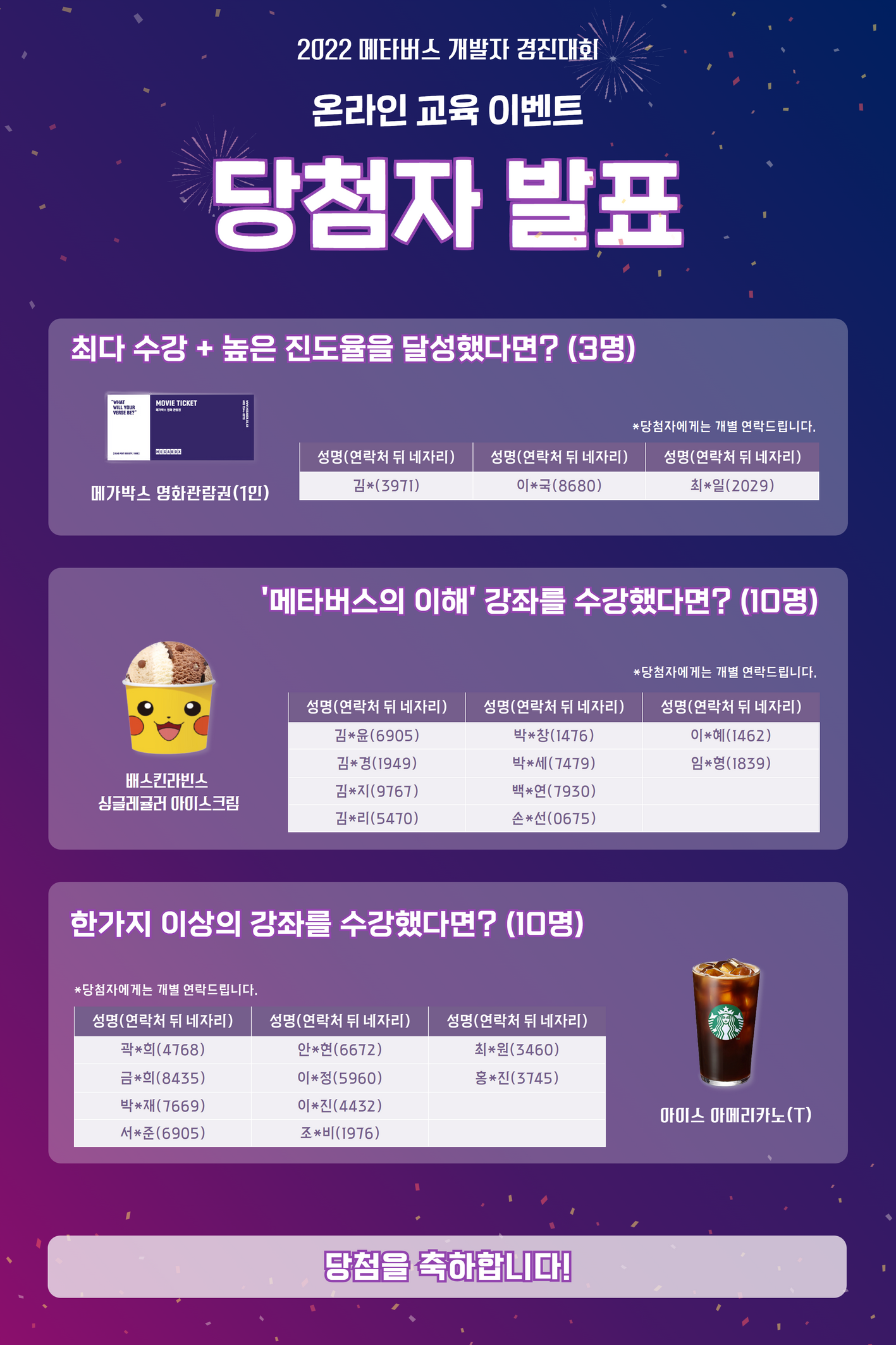 [당첨자발표] 2022 메타버스 개발자 경진대회 온라인 교육 이벤트 당첨자 발표