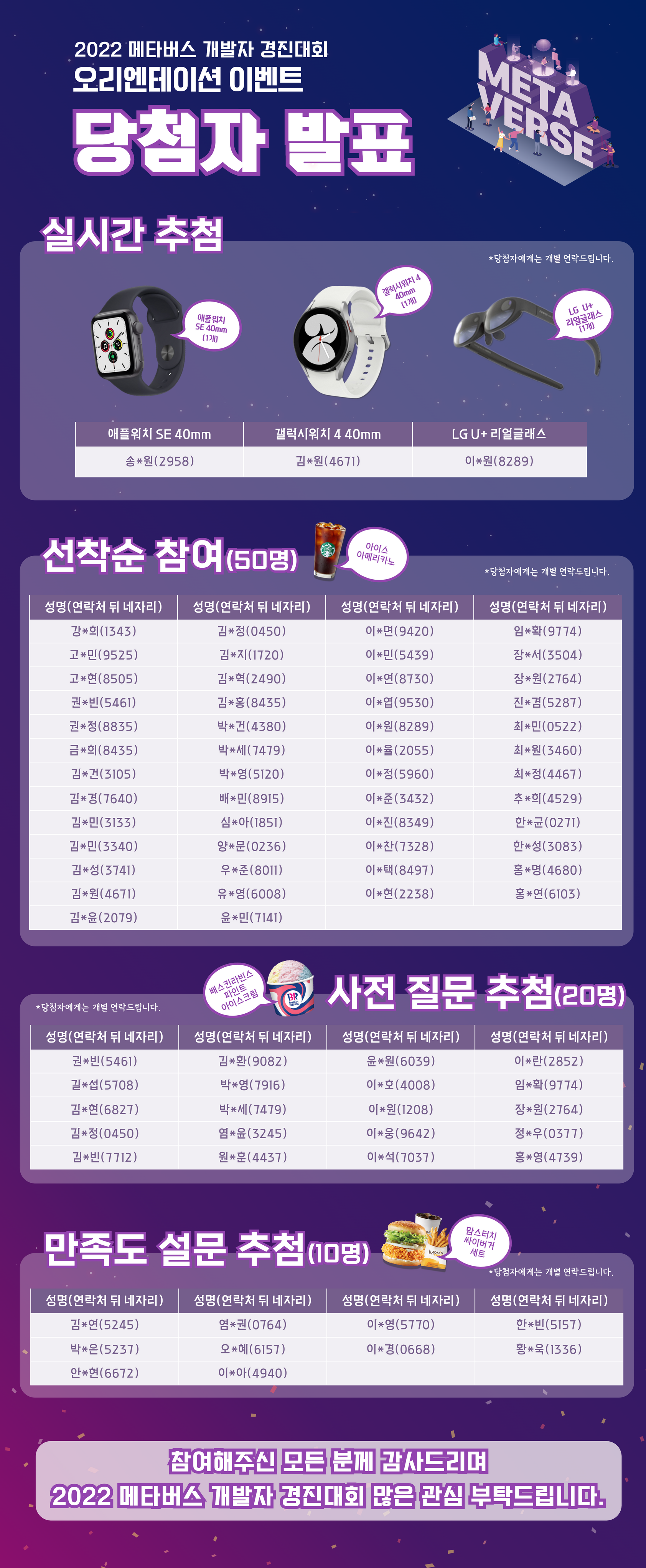 2022 메타버스 개발자 경진대회 오리엔테이션 이벤트 당첨자 발표!!