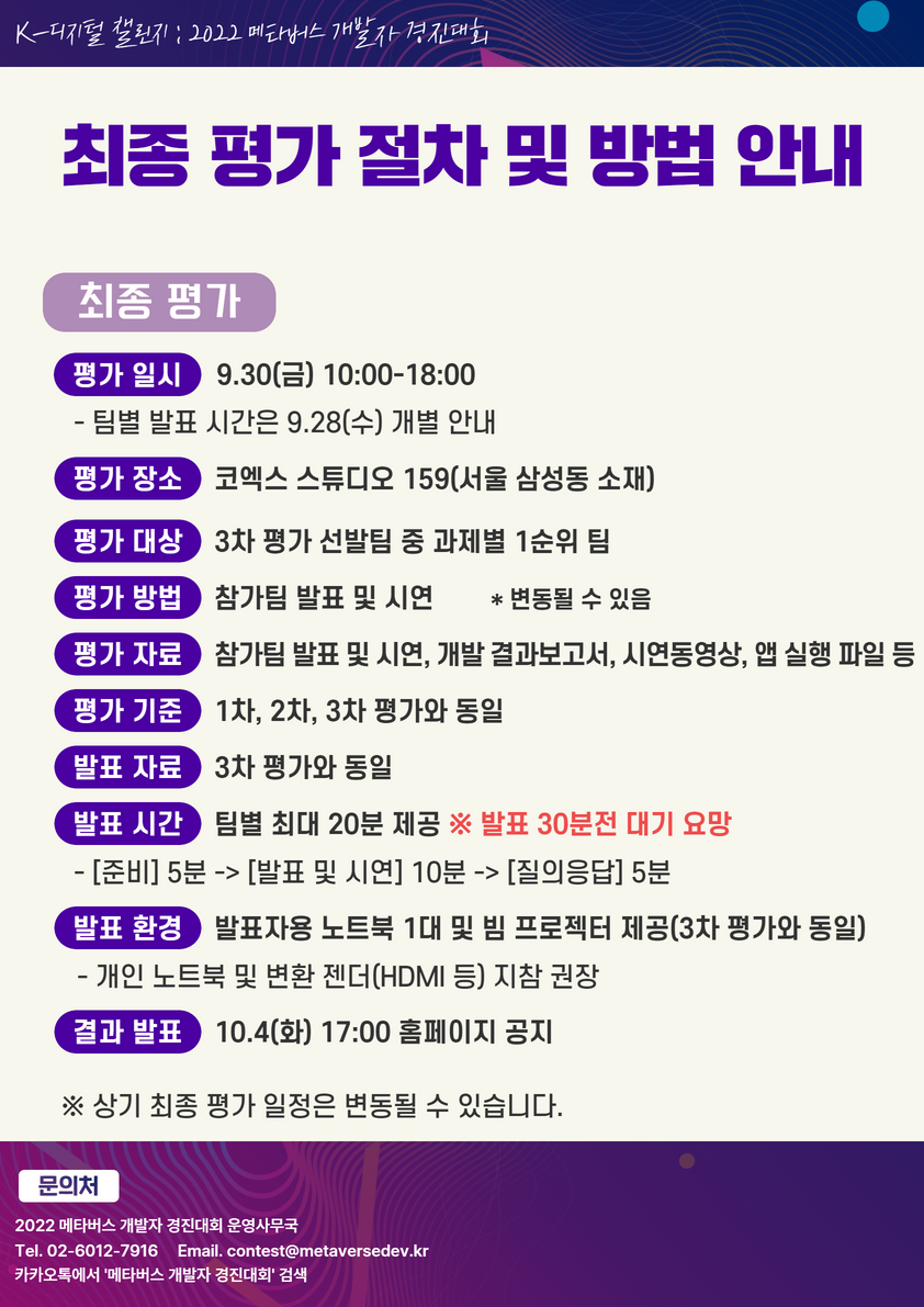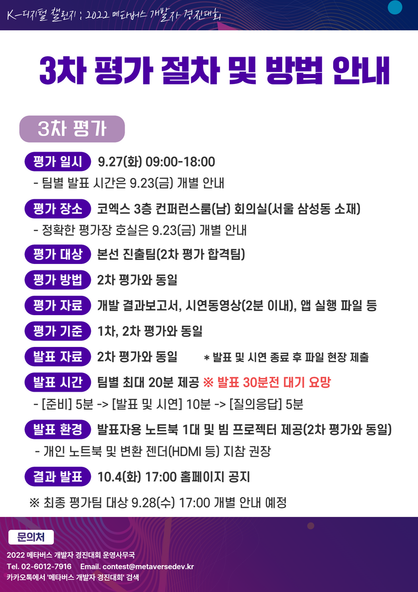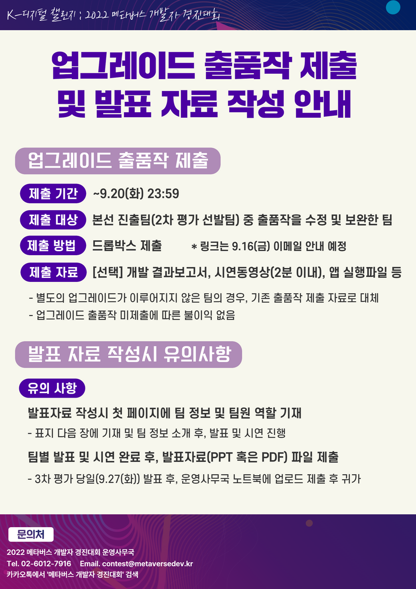 [공지사항] 2022 메타버스 개발자 경진대회 업그레이드 출품작 제출, 3차 평가 및 최종 평가 절차 및 방법 안내