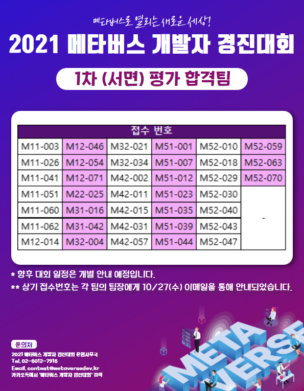 [공지] 2021 메타버스 개발자 경진대회 1차 서면 평가 발표