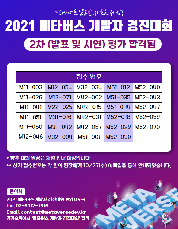 [공지] 2021 메타버스 개발자 경진대회 2차 발표 및 시연 평가 발표