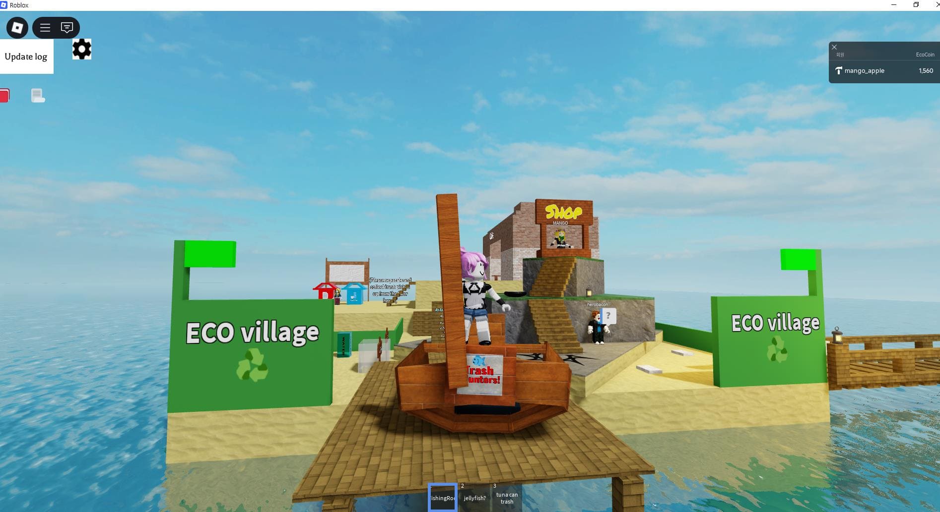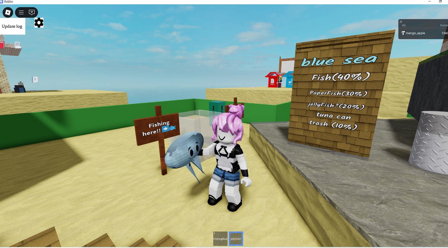 환경오염 주제의 로블록스 기반 물고기 게임 콘텐츠