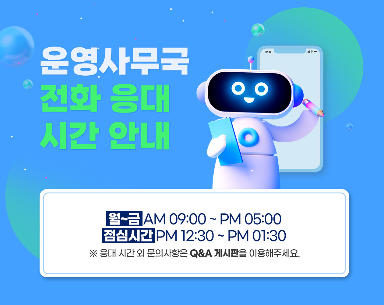 ** 전화 문의 응대 시간 외 문의사항은 홈페이지 Q&A게시판을 이용 부탁드립니다.