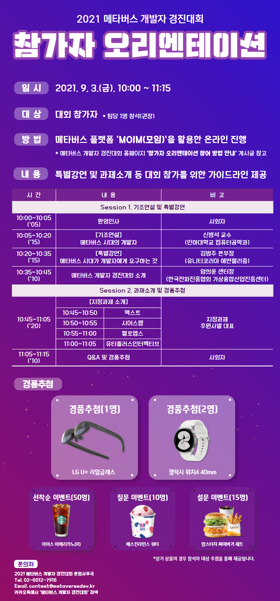 [공지] 2021 메타버스 개발자 경진대회 참가자 오리엔테이션 안내