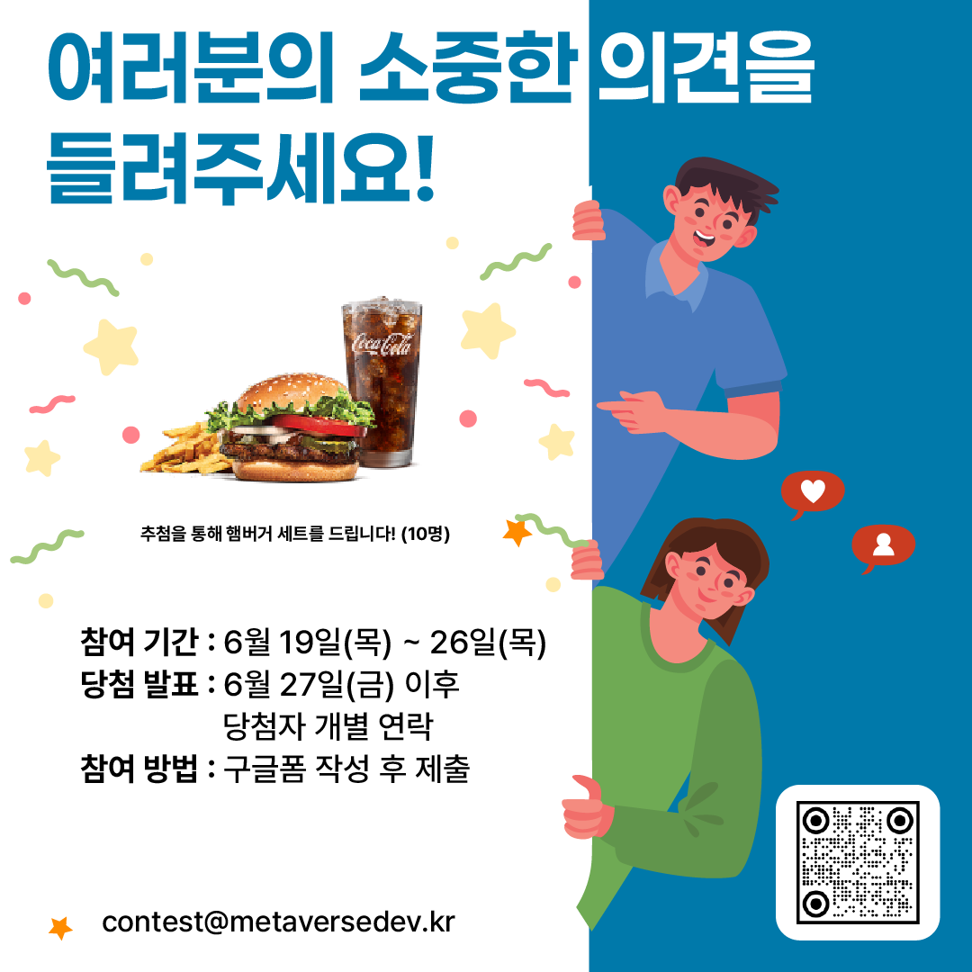 만족도 설문조사를 해주시면 총 10분께 햄버거 세트를 보내드립니다 ~ !! : )